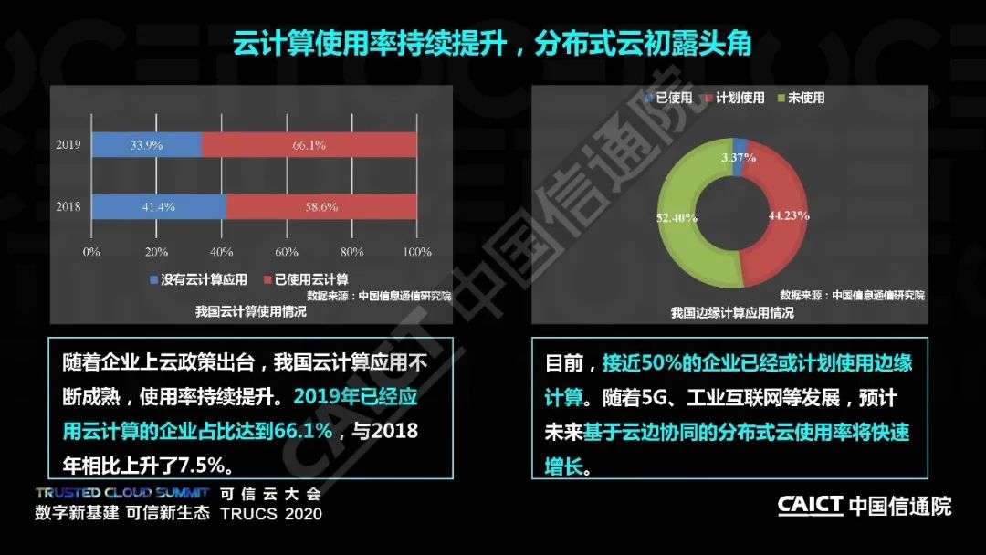 “随着云边协同的发展,在工业等多个领域,分布式云将成为主要模式。”栗蔚说,中国信通院的调研显示,超过50%的用户已经计划或者已经使用边缘云的模式,“中心云+边缘云”的分布式云的架构已经崭露头角。