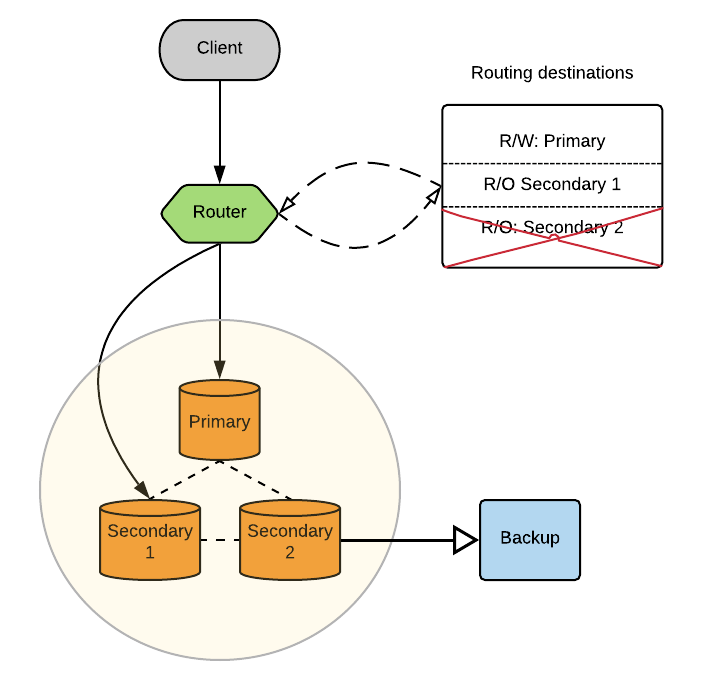 注意:Secondary2用于进行备份,因此DBA将其从传入的客户端连接中排除