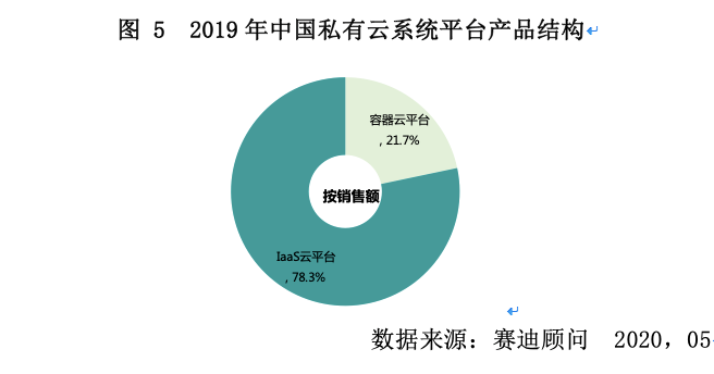 私有云系统平台是构建私有云的核心组成部分。其中,私有云系统平台中IaaS云平台是构建私有云的基础,能够将IT基础资源服务化,占私有云系统平台市场规模的78.3%;容器云平台为应用提供标准化的运行环境占私有云系统平台市场规模的21.7%。