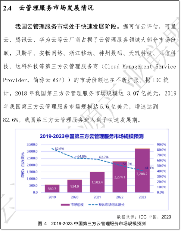 。首先阐述了云管理服务的内涵,同时从关键要素、主要服务商和产品、市场情况方面梳理了云管理服务的发展现状,归纳总结了云管理服务产业的发展特点,并详解了云管理服务在典型行业的应用实践,最后对云管理服务未来的发展趋势进行了探讨和分析。