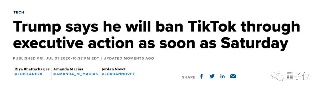 https://www.cnbc.com/2020/07/31/trump-says-he-will-ban-tiktok-through-executive-action-as-soon-as-saturday.html杨净 发自 凹非寺