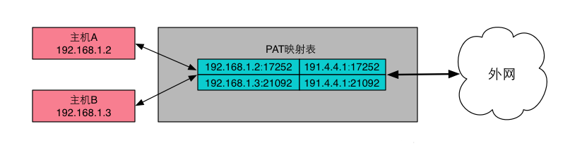 这是最常用的NAT技术,也是IPv4能够维持到今天的最重要的原因之一,它提供了一种多对一的方式,对多个内网IP地址,边界路由可以给他们分配一个外网IP,利用这个外网IP的不同端口和外部进行通信。NAPT与动态NAT不同,它将内部连接映射到外部网络中的一个单独的IP地址上,同时在该地址上加上一个由NAT设备选定的端口号。