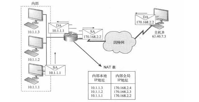 当内部网络中的一台主机想传输数据到外部网络时,它先将数据包传输到NAT路由器上,路由器检查数据包的报头,获取该数据包的源IP信息,并从它的NAT映射表中找出与该IP匹配的转换条目,用所选用的外网IP来替换内部局部地址,并转发数据包。