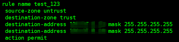 由于需求三源地址与目的地址同属于trust域,而需求一源地址为trust域,目的地址为untrust域,所以需求一的配置对需求三无效,即便需求三已经映射到外网也无法访问,需求三需要在需求一配置基础上增加nat规则配置,配置如下图所示:
