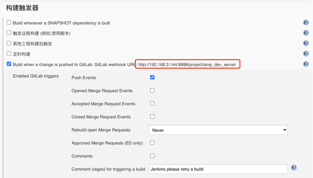 Buildwhen a change is pushed to GitLab:检测到Gitlab项目代码提交后就触发