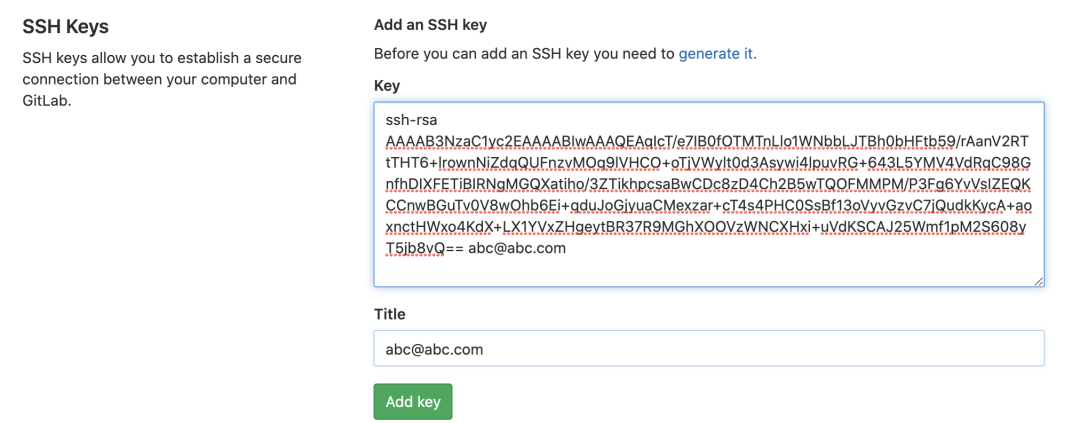 把生成的公钥放在Gitlab中