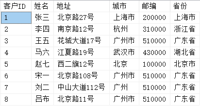 示例表Customers结构及数据如下:
