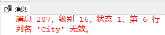 从返回的消息中我们可以看到,重命名后的City并不能被WHERE识别,所以才会报“列名'City'无效”的提示。