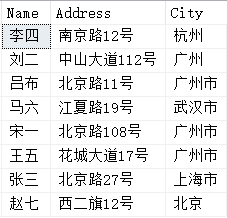 SELECT 姓名 AS Name,地址 AS Address,城市 AS CityFROM CustomersORDER BY 1,2,3