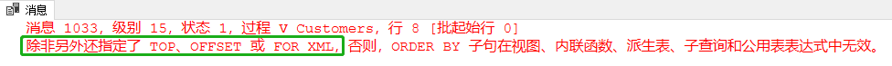 CREATE VIEW V_Customers ASSELECT 客户ID AS ID,姓名 AS Name,地址 AS Address,城市 AS CityFROM CustomersORDER BY ID,Name,Address