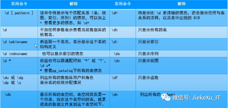 [omm@openGauss ~]$ gsql -d postgres -p 26000gsql ((openGauss 1.0.0 build 0bd0ce80) compiled at 2020-06-30 18:19:27 commit 0 last mr )Non-SSL connection (SSL connection is recommended when requiring high-security)Type "help" for help.postgres=# helpYou are using gsql, the command-line interface to gaussdb.Type: \copyright for distribution terms\h for help with SQL commands\? for help with gsql commands\g or terminate with semicolon to execute query\q to quitpostgres=# SHOW server_version;server_version----------------9.2.4(1 row)---查看数据库postgres=# \lList of databasesName | Owner | Encoding | Collate | Ctype | Access privileges-----------+-------+-----------+---------+-------+-------------------postgres | omm | SQL_ASCII | C | C |template0 | omm | SQL_ASCII | C | C | =c/omm +| | | | | omm=CTc/ommtemplate1 | omm | SQL_ASCII | C | C | =c/omm +| | | | | omm=CTc/omm(3 rows)---某一个参数查看,全部参数查看使用 SHOW ALL;postgres=# SELECT * FROM pg_settings WHERE NAME='server_version';name | setting | unit | category | short_desc | extra_desc | context | vartype | source | min_val| max_val | enumvals | boot_val | reset_val | sourcefile | sourceline----------------+---------+------+----------------+---------------------------+------------+----------+---------+---------+---------+---------+----------+----------+-----------+------------+------------server_version | 9.2.4 | | Preset Options | Shows the server version. | | internal | string | default || | | 9.2.4 | 9.2.4 | |(1 row)-- 查看当前库下的所有表postgres=# \dNo relations found.postgres=# create table jikexu(id int primary key,name varchar(40));NOTICE: CREATE TABLE / PRIMARY KEY will create implicit index "jikexu_pkey" for table "jikexu"CREATE TABLEpostgres=# \dList of relationsSchema | Name | Type | Owner | Storage--------+--------+-------+-------+----------------------------------public | jikexu | table | omm | {orientation=row,compression=no}(1 row)