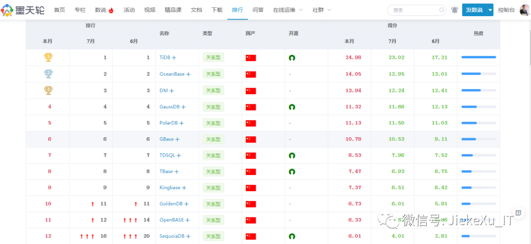 在墨天轮国产数据库排行榜上,TiDB 稳居第一,OceanBase 居第二,DM(达梦) 居第三,希望在社区的推动之下,openGauss 会迎来更加广阔的发展空间,能够跻身前三!