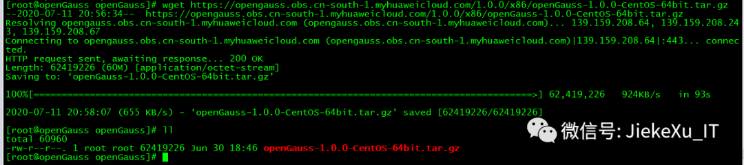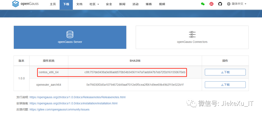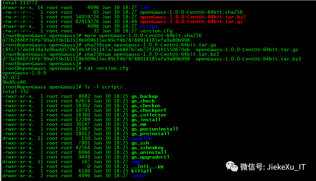 [root@openGauss app]# lltotal 60960-rw-r--r--. 1 root root 62419226 Jul 9 11:40 openGauss-1.0.0-CentOS-64bit.tar.gz[root@openGauss app]#[root@openGauss app]# sha256sum openGauss-1.0.0-CentOS-64bit.tar.gzc8fc757de0438a3e06add570b54b34561147a7aeb847b7eb72f2d161550670eb openGauss-1.0.0-CentOS-64bit.tar.gz