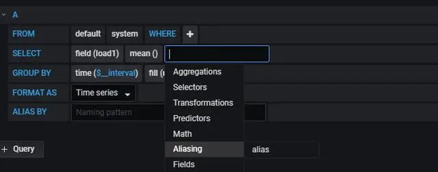 第三步: 选择 需要查询的字段 ,这里选择三个字段(load1,load5,load15 )分别表示系统在这三个时间段的负载情况 ;