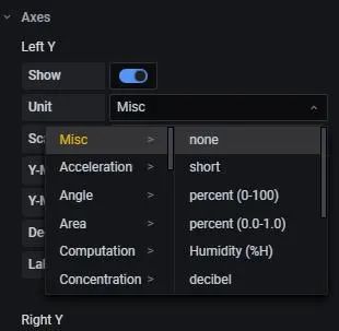 点击右边 AXES——>left Y , Unit 这里的单位我们选择none