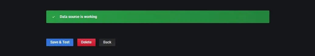 点击 Save & Test 对添加的数据源进行检测,显示 Data source is working 即表示成功