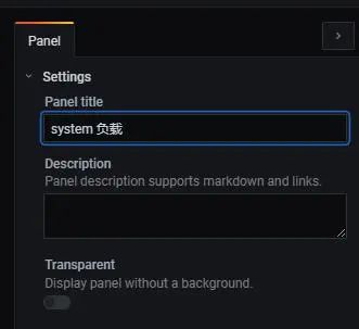 点击 右边 settings——> panel title 修改名称 这里给这张表定义名称为 system 负载