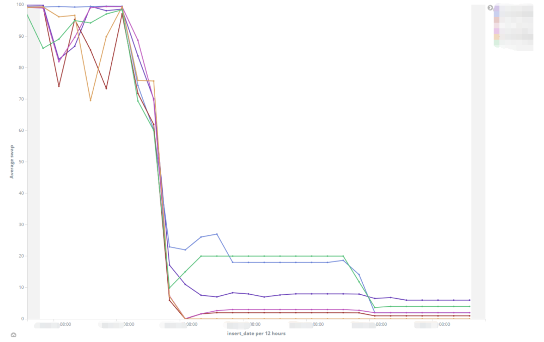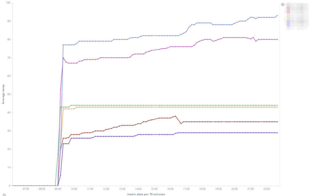 通过扩容内存后结合业务进行几天的观察后swap得到有效得控制,swap趋势图如下: