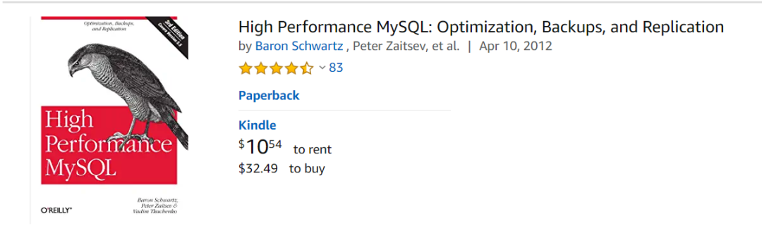 当然值得一提的是,图书的价格,其实差异还是很大的,只是亚马逊上面《高性能MySQL》的价格,32美金左右,得200元左右了,国内的定价是128元,还有折扣。