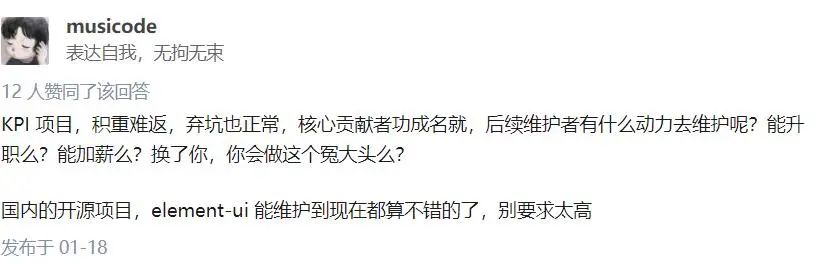 峰回路转,就在我快要绝望的时候,又有一位前Element的维护大佬说到Element将来不会停止维护。