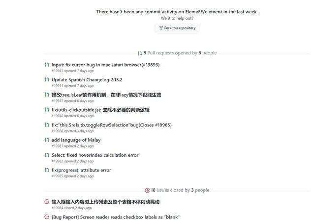要知道我也是一名忠实且重度使用Element的用户,看到最近一年Element的更新状态很是忧伤和焦虑哎!