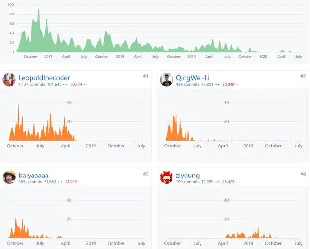 代码仓库提交量最多的两个大佬也已经按兵不动了。。。