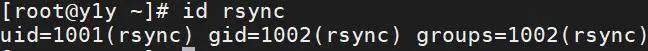 好了后用 id rsync 确认一下,如有下面显示说明用户增加成功,具体id号根据每个用户环境会有所不同