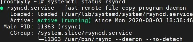 看到 active (running)说明服务正常运行,如果需开机启动再运行systemctl enable rsyncd。