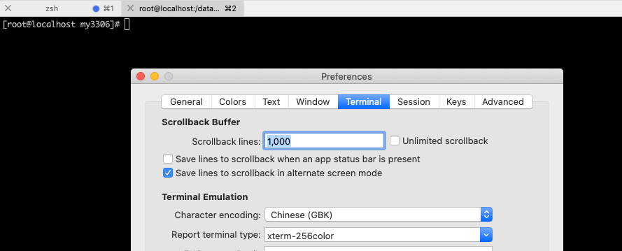 character_set_server=utf8,character_set_client=gbk,character_set_results=gbk,terminal(我的iterm工具)的字符集为gbk。