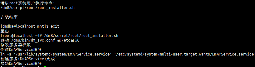 脚本/dm8/script/root/root_installer.sh用来创建DmAPService服务,并启动