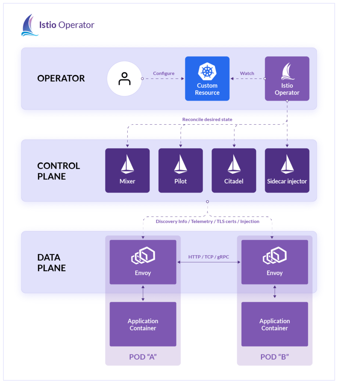 由一组以 Sidecar 方式部署的智能代理 Envoy 组成。Envoy 被部署为 Sidecar,和对应服务在同一个 Kubernetes pod 中。这允许 Istio 将大量关于流量行为的信号作为属性提取出来,而这些属性又可以在 Mixer 中用于执行策略决策,并发送给监控系统,以提供整个网格行为的信息。这些代理可以调节和控制微服务及 Mixer 之间所有的网络通信。负责管理和配置代理来路由流量,此外配置 Mixer 以实施策略和收集遥测数据。Sidecar 是一种将应用功能从应用本身剥离出来作为单独进程的设计模式,可以允许向应用中无侵入的添加功能,避免为了满足第三方需求而添加额外的代码。在软件架构中,Sidecar 附加到主应用,或者叫父应用上,以扩展、增强功能特性,同时 Sidecar 与主应用是松耦合的。Sidecar 是一种单节点多容器的应用设计形式,主张以额外的容器来扩展或增强主容器。Envoy 是一个独立的进程,旨在与每个应用程序服务器一起运行。所有 Envoy组成了一个透明的通信网格,其中每个应用程序发送和接收来自本地主机的消息,并且不需要知道网络拓扑。与传统的服务通信服务的库方法相比,进程外架构有两个实质性好处:Envoy 以透明的方式弥合了面向服务的体系结构使用多个应用程序框架和语言的情况。Mixer 是一个独立于平台的组件,负责在服务网格上执行访问控制和使用策略,并从 Envoy 代理和其他服务收集遥测数据,代理提取请求级属性,发送到 Mixer 进行评估。有关属性提取和策略评估的更多信息,请参见 Mixer 配置。Mixer 中包括一个灵活的插件模型,使其能够接入到各种主机环境和基础设施后端,从这些细节中抽象出 Envoy 代理和 Istio 管理的服务。控制面中负责流量管理的组件为 Pilot,它为 Envoy Sidecar 提供服务发现功能,为智能路由(例如 A/B 测试、金丝雀部署等)和弹性(超时、重试、熔断器等)提供流量管理功能。它将控制流量行为的高级路由规则转换为特定于 Envoy 的配置,并在运行时将它们传播到 Sidecar。Istio 以可扩缩的方式管理微服务间通信的身份验证、授权和加密。Istio 提供基础的安全通信渠道,使开发者可以专注于应用层级的安全。Istio 可以增强微服务及其通信(包括服务到服务和最终用户到服务的通信)的安全性,且不需要更改服务代码。它为每个服务提供基于角色的强大身份机制,以实现跨集群、跨云端的互操作性。如果我们结合使用 Istio 与 Kubernetes(或基础架构)网络政策,Pod 到 Pod 或服务到服务的通信在网络层和应用层都将安全无虞。Istio 以 Google 的深度防御策略为基础构建而成,以确保微服务通信的安全。当我们在 Google Cloud 中使用 Istio 时,Google 的基础架构可让我们构建真正安全的应用部署。Istio 可确保服务通信在默认情况下是安全的,并且我们可以跨不同协议和运行时一致地实施安全政策,而只需对应用稍作调整,甚至无需调整。Istio 使用 Envoy 代理的扩展版本,Envoy 是以 C++ 开发的高性能代理,用于调解服务网格中所有服务的所有入站和出站流量。Envoy 的许多内置功能被 Istio 发扬光大,例如:动态服务发现