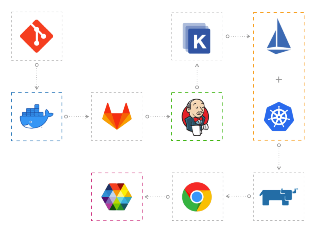 Kustomize 通过配置文件,设置了 Istio 的配置(染色识别、流量分发),并启动 K8s 部署应用。