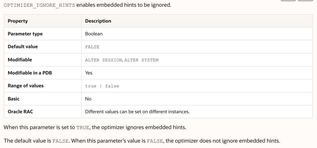 19c环境我们可以使用OPTIMIZER_IGNORE_HINTS参数来忽略sql语句中使用的hint。默认为false,我们在system级别调成true,再跑下spa任务。