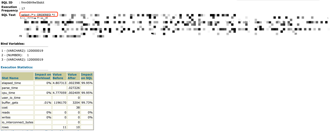 SPA任务跑的慢,说明语句可能存在问题。那么本次的原因是因业务语句使用hint导致,根本上解决此问题还需要和业务侧沟通整改。另外补充下,OPTIMIZER_IGNORE_HINTS参数对现有绑定sqlprofile的语句不影响,这里不再详细阐述。