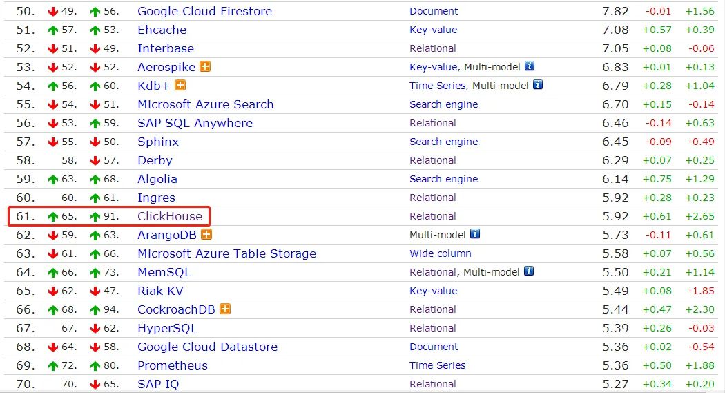 前100名中,本月同期涨幅榜冠军是ClicKHouse,上升了30名。