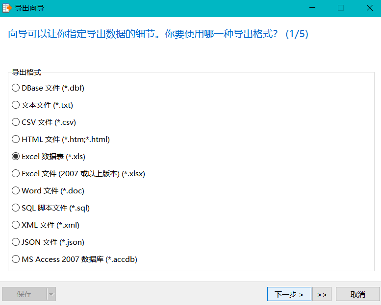 选择需要导出的列,默认全部字段,也可以选择指定字段,点击下一步