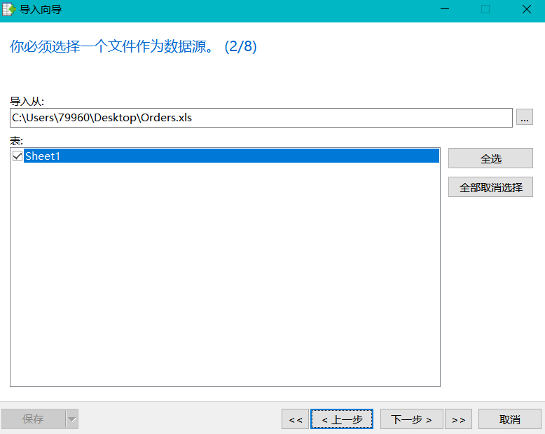 选择要导入的目标表,你也可以直接新建一张表,这里我们导入到目标表Orders,然后点击下一步