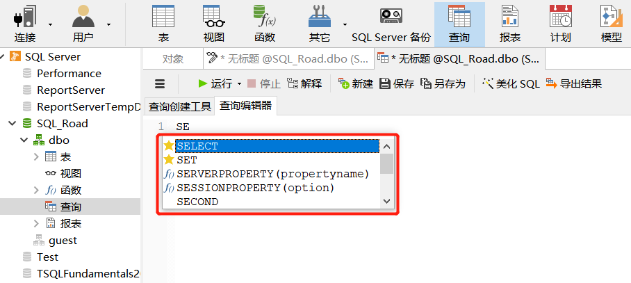 根据我们输入的字符来自动提醒一些关键字,字段名,表名,视图名,函数名等,如下:
