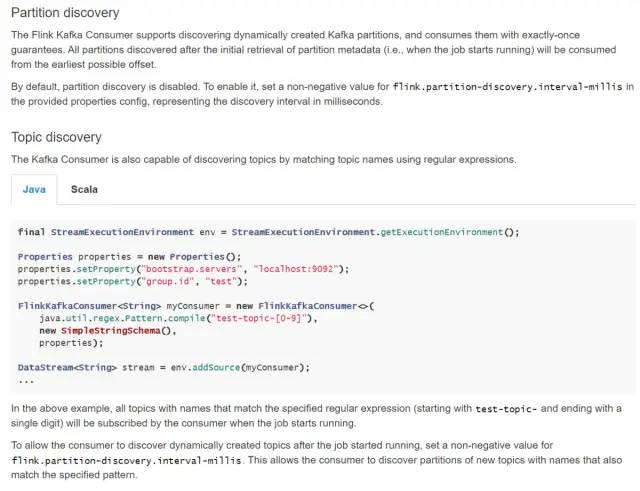 根据官方文档(如上图),Flink是支持Topic/Partition Discovery的,但是默认并未开启,需要手动配置flink.partition-discovery.interval-millis