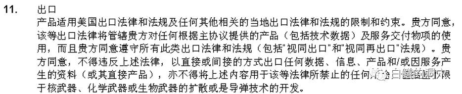 另外Oracle主协议也明确了Oracle产品适用于美国出口法律和法规,也就是Oracle产品出口必须遵循EAR。