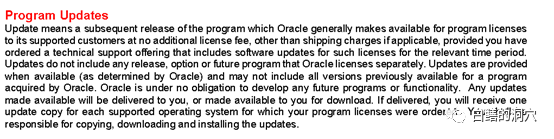 从OLSA协议上看,不采购Oracle服务,仅仅限制了用户享用Oracle服务的资格,并不对所采购的Oracle数据库的终生拥有权产生影响。有些Oracle销售忽悠用户不RENEW使用ORACLE数据库是盗版行为,这种说法是完全站不住脚的。但是关于软件更新的条款从另外一个方面对使用Oracle数据库给出了限定: