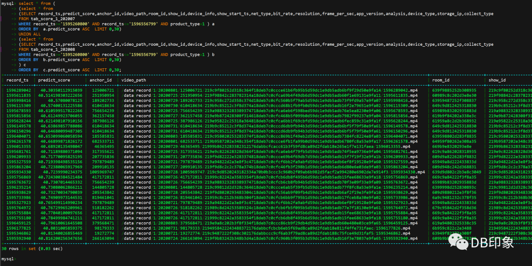 akendb=# (select * from tab02 ) 人更美akendb-# union all akendb-# (select * from tab01) akendb-# order by id asc limit 2; id | num_col01 ----+----------- 1 | 73 1 | 100(2 rows)akendb=#
