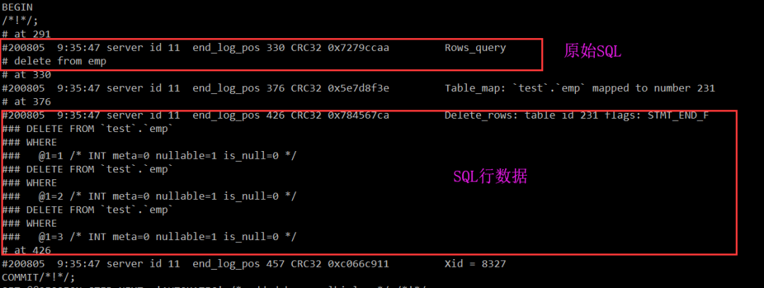 1. 如果不确定 SQL 格式或是无法筛选到数据,比如因为 delete from 中间冷不丁多一个空格出来,可以使用 grep 多次过滤筛选,比如 grep -C 1 -i "Rows_query" |grep -C 1 -i "Audit_Orga_Specialtype" |grep -C 1 -i "delete" 筛选对应表上的 delete 操作。