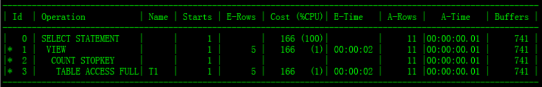 这是一个很简单的分页查询SQL,没有order by,执行计划使用的是全表扫描,生产系统平均buffer gets接近9万(上面用来模拟的t1表相对较小,只有741个block,索引180个左右的block).