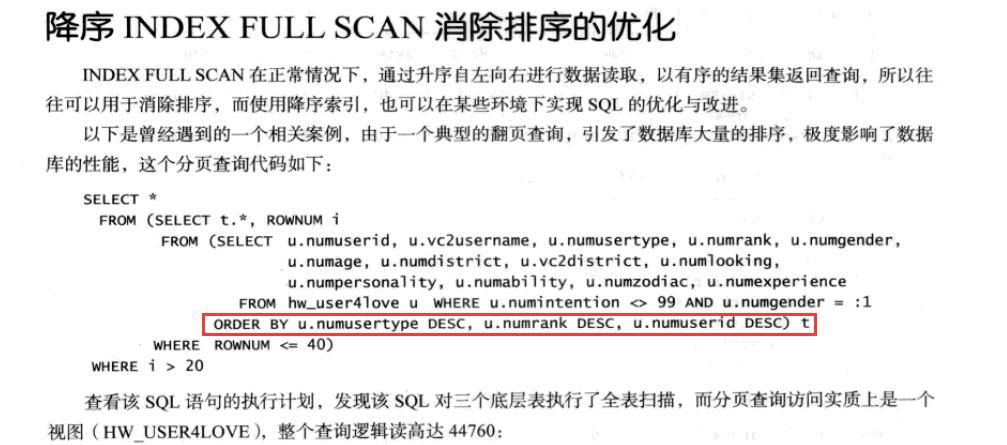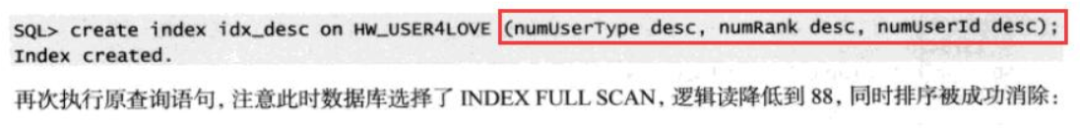 虽然也能起到优化作用,但是就像我一开始的案例分析的那样, 这个SQL创建普通的索引即可.desc 索引实际上是创建了一个函数索引,这种索引,其他SQL可能用不上.
