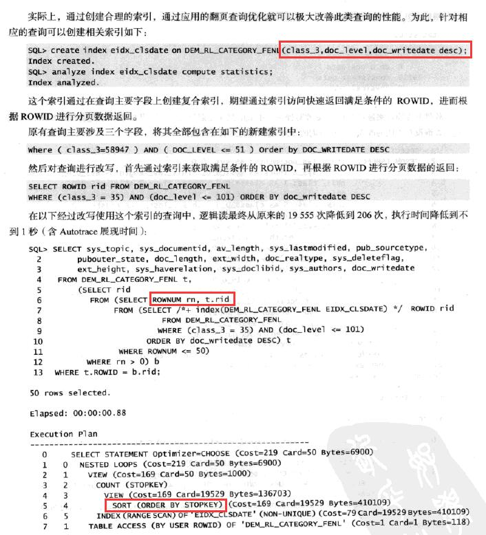 原作者的建议是 class_3 + doc_level + doc_writedate desc 3字段组合索引, 这个组合索引,最后的doc_writedate desc是没有任何意义的, 不能起到过滤作用, 也不能去掉排序(执行计划中的sort order by还在).