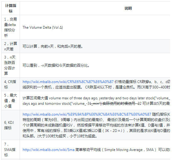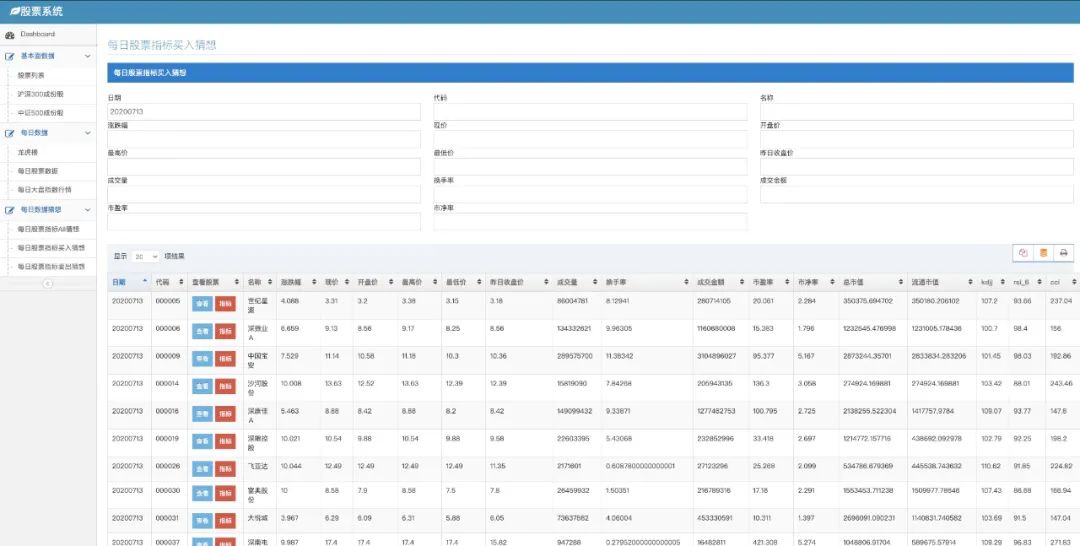 此股票分析系统提供的每日股票指标数据,按照 17 个计算指标进行计算(下图截取部分计算指标):