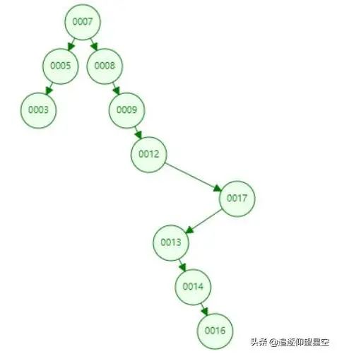 如图所示:这就是一个二叉查找树的实例。每次数据插入的时候,都是先判断是否比根节点大 (当前数据 > 根节点 ?从右边插入 :从左边插入 ) 这是一个三元运算符 。而且插入都是从最下面的叶子节点做比较再选择是否在叶子节点的左边还是右边。这里便会产生一个缺点: 树的高度问题。数据越多,高度越大。这样导致查询最下面的叶子节点耗时过长。于是便出现了它其中的一种红黑树 。