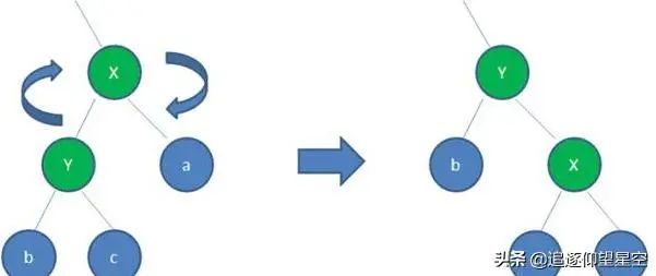 右旋 :自己的左节点成为自己的父节点。取而代之的是 左节点的右节点成为自己的左节点。