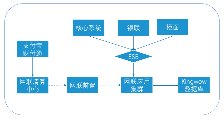 我行2018年初决定在网联支付系统中首次尝试使用Kingwow分布式数据库。网联支付目前主要承接从第三方支付发起的收付款业务,经网联清算平台,转发至银行(见图2)。目前我行对接支付宝、财付通、京东等主要的第三方支付机构,涉及客户交易每日数百万笔,交易金额上亿。